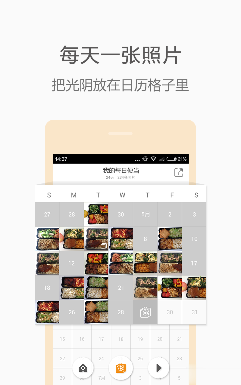 想要保留自己在岁月中的痕迹吗?那就快来试试打卡相机吧,在这里你能够养成每日照相的习惯,用相机记录你的生活与变化,让你成为生活中真正的有心人想要保留住自己的青春那么就赶快使用打卡相机吧!