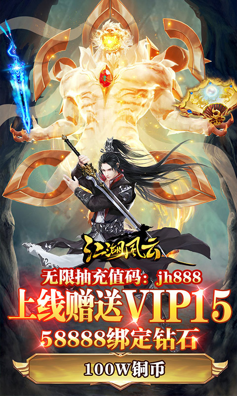 上榜理由:大型玄幻武侠类arpg【武动九天】强势登场,上线赠送满级V15,88888绑定元宝,铜币无限,更加过分的是玩家达到100级时送100元模拟充值,100级对于大侠您来说,就是信手拈来的事情,100元模拟充值请放进口袋装好。